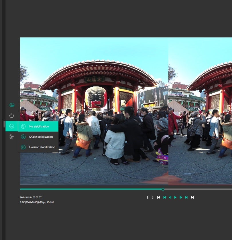 手ブレを補正するためには、Shake Stabilizationでレンダリングし、更にVR180 Creatorで編集用にコンバートする際にも「手ぶれ補正」をONにするとだいぶ改善はします。やはりVuze XRはEvoに比べてハードウエアの点では勝っているが、ソフトウエアの点で遅れを取っている、ということになりますね。